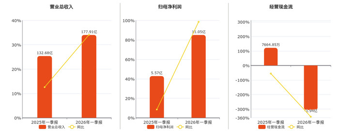 公司营业总收入为177.91亿元。归母净利润为11.05亿元。经营活动现金净流入为-1.94亿元,较去年同报告期经营活动现金净流入减少2.70亿元,同比较去年同期下降352.66%。